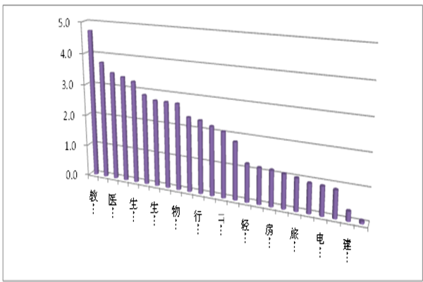 4.某职位类型的学历错位度指数=(该学历求职者人数-用人单位对该学历需求者人数)÷用人单位对该学历需求者人数;错位度指数为正值表明供大于求,错位度为负值说明供小于求。