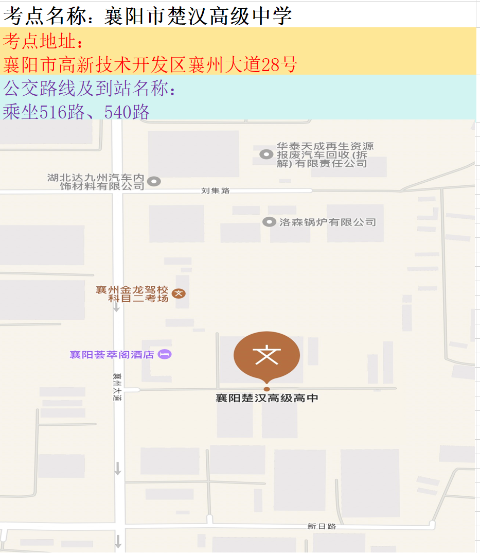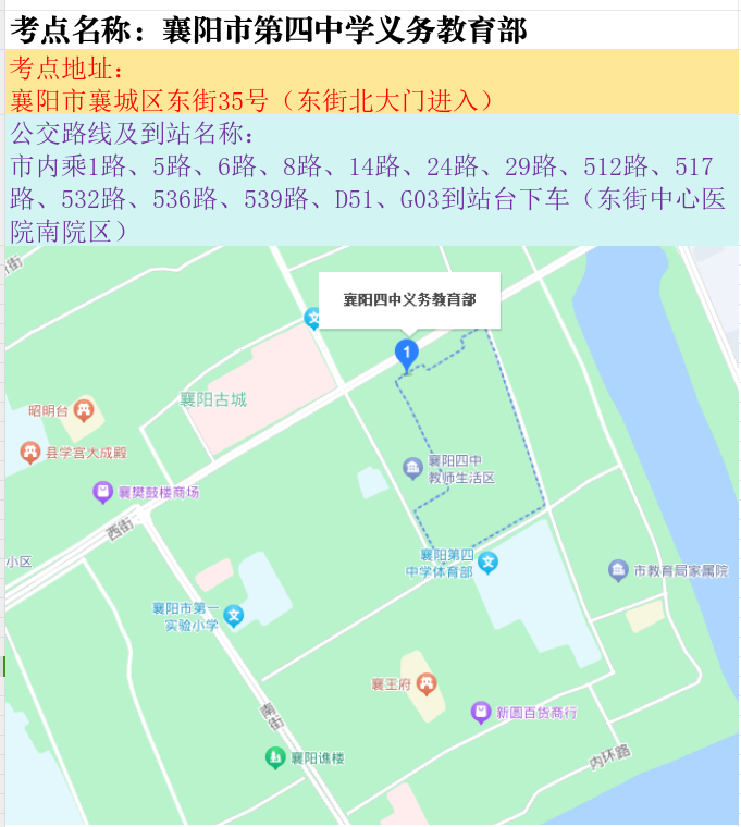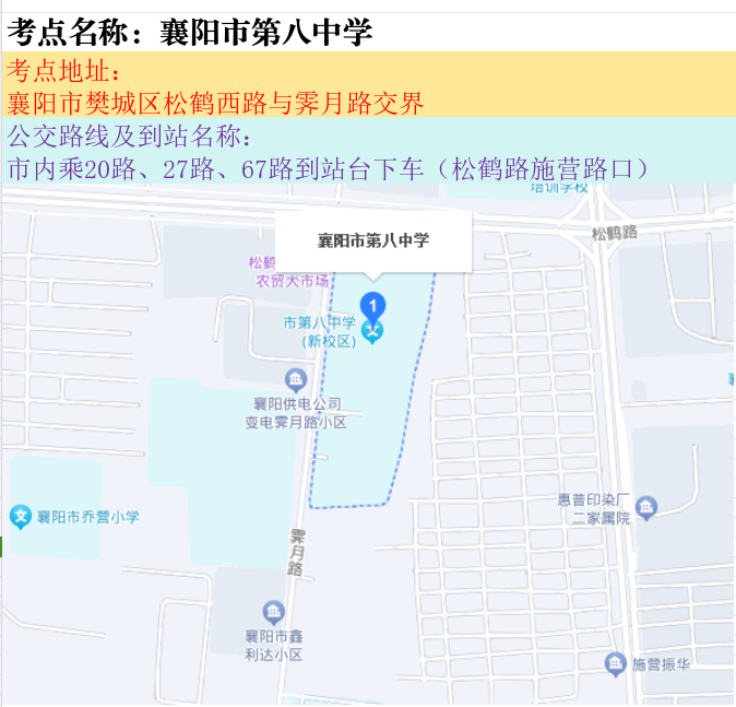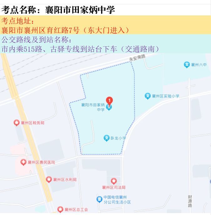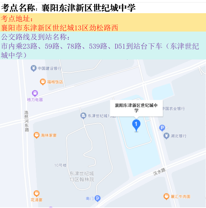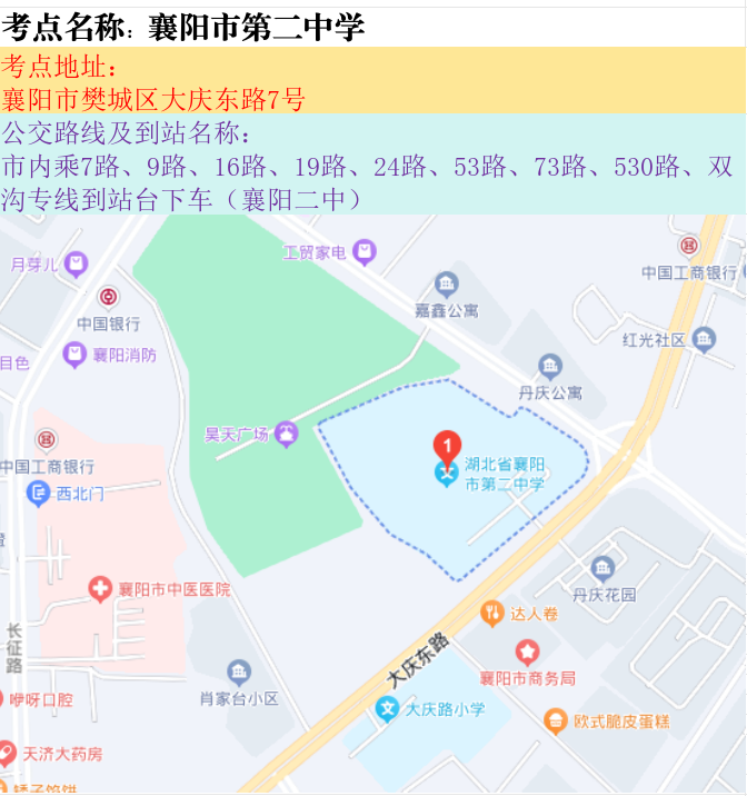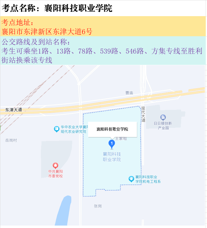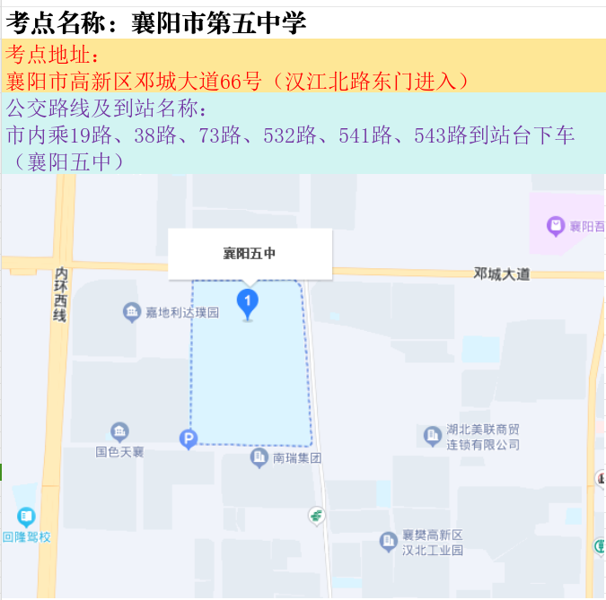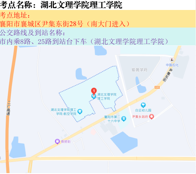湖北省2025年度省市县乡考试录用公务员笔试襄阳考区考点地图