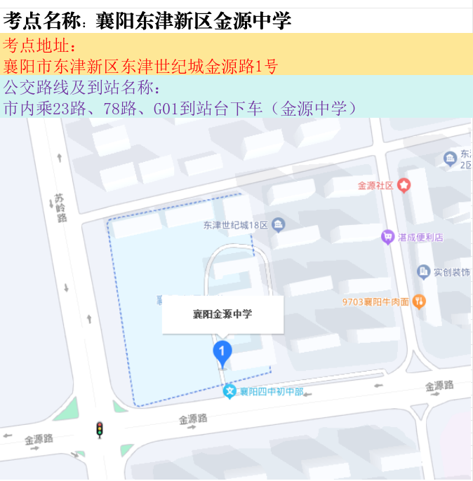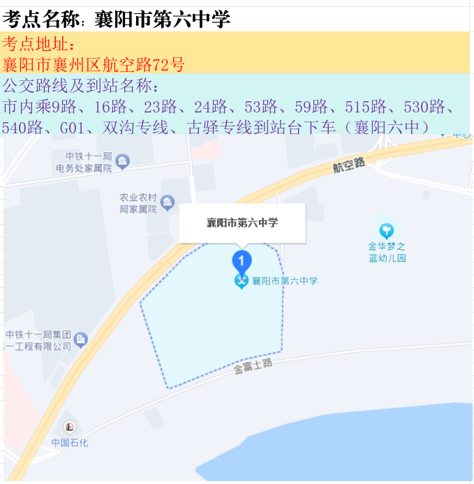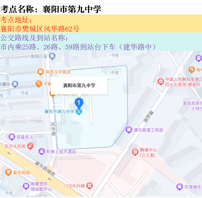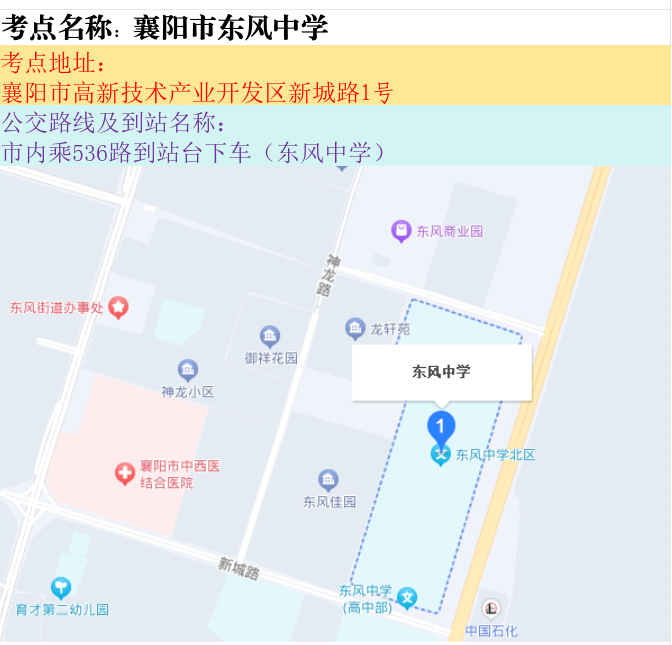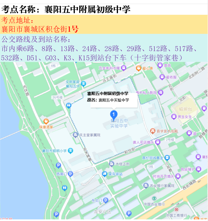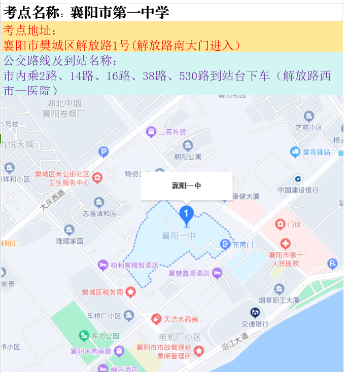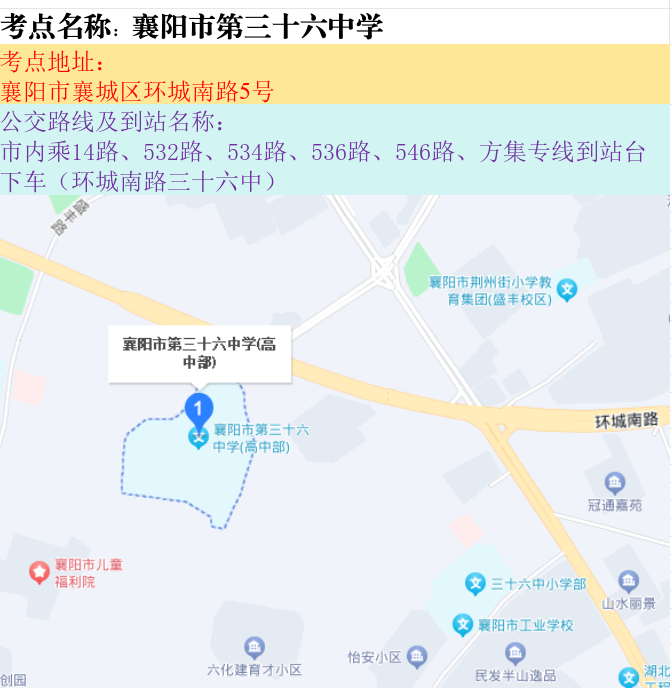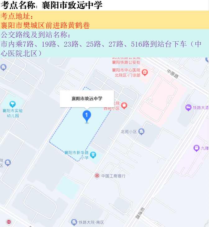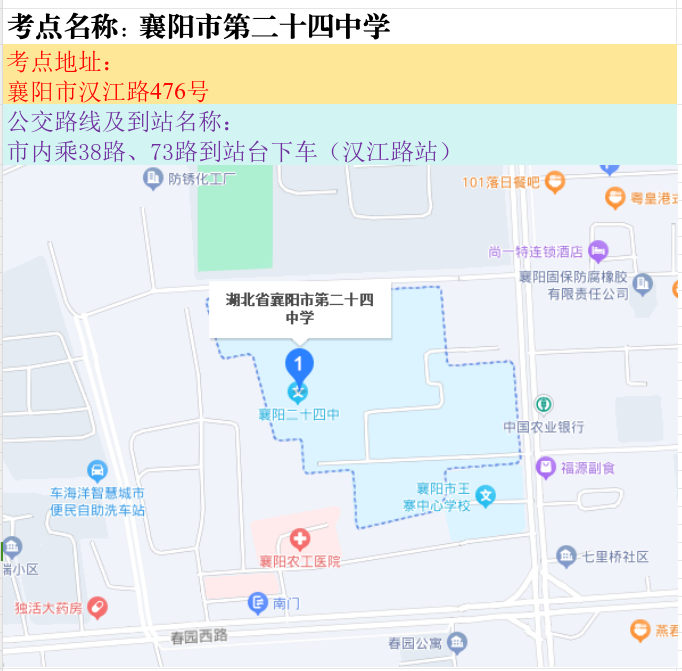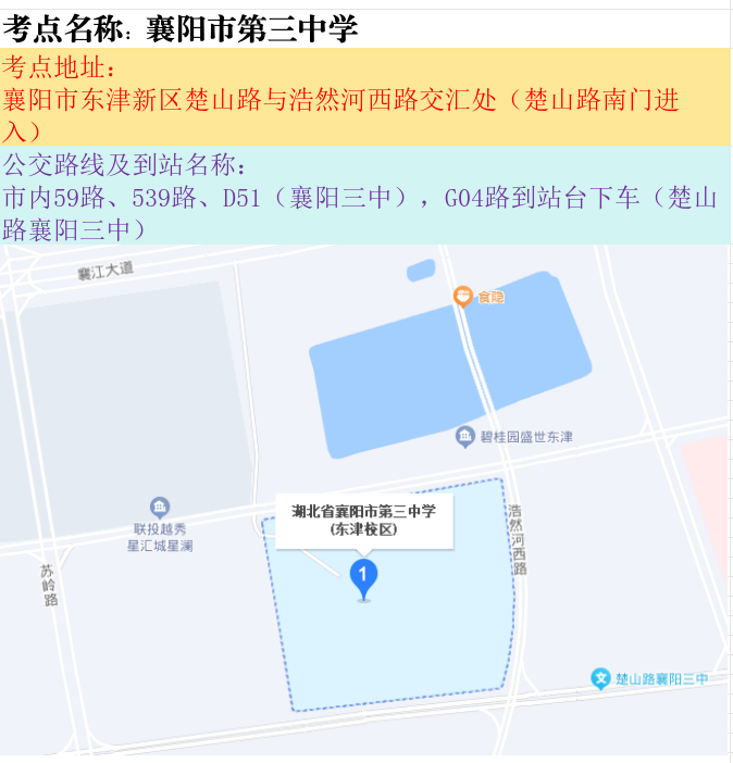 湖北省2025年度省市县乡考试录用公务员笔试襄阳考区考点地图