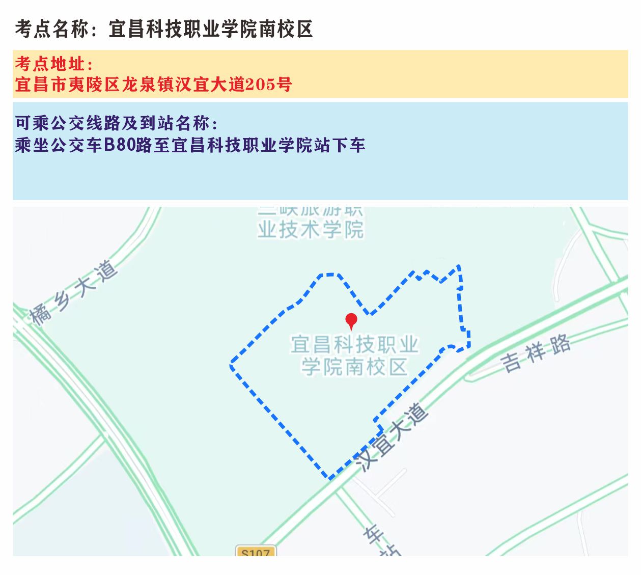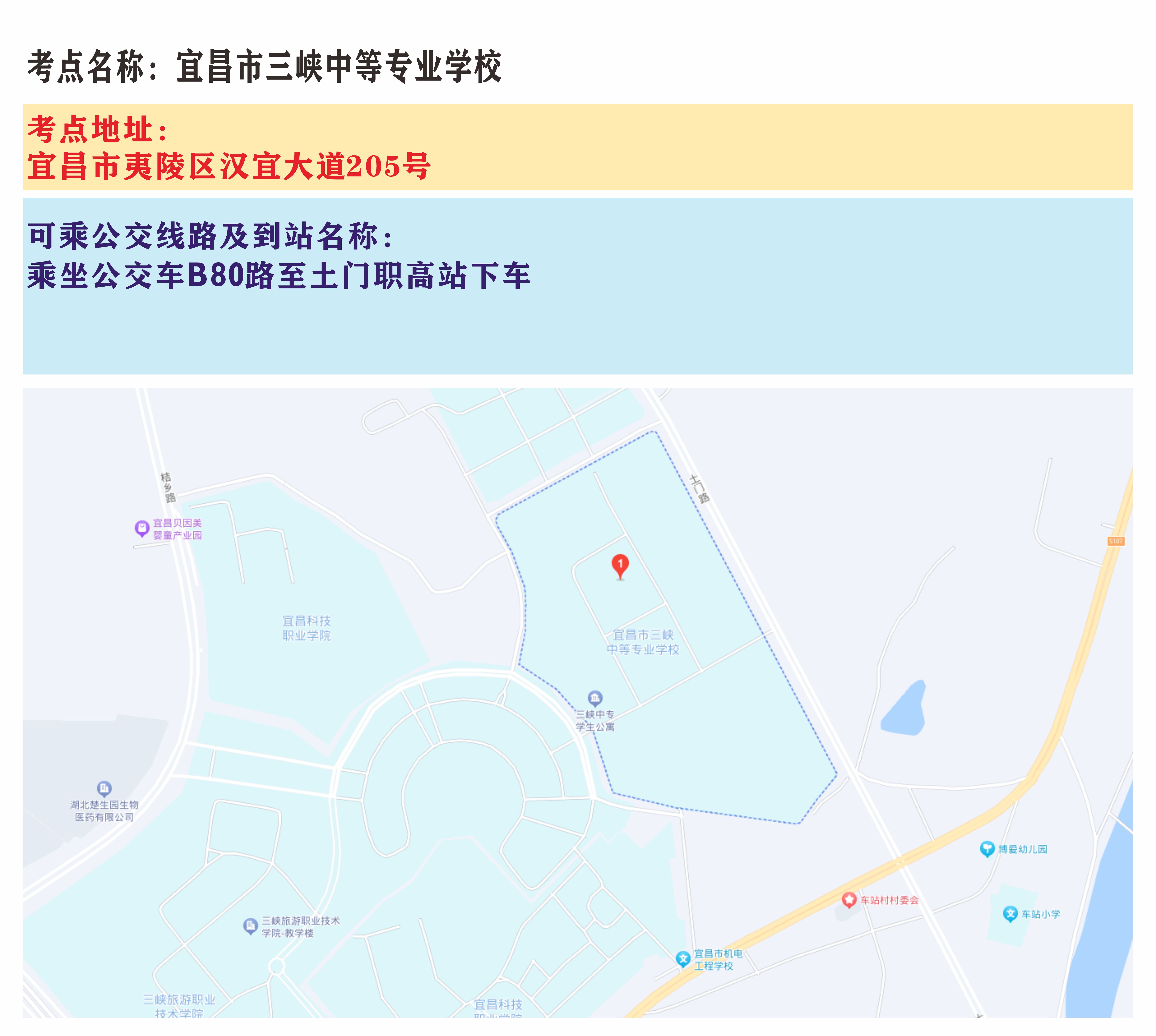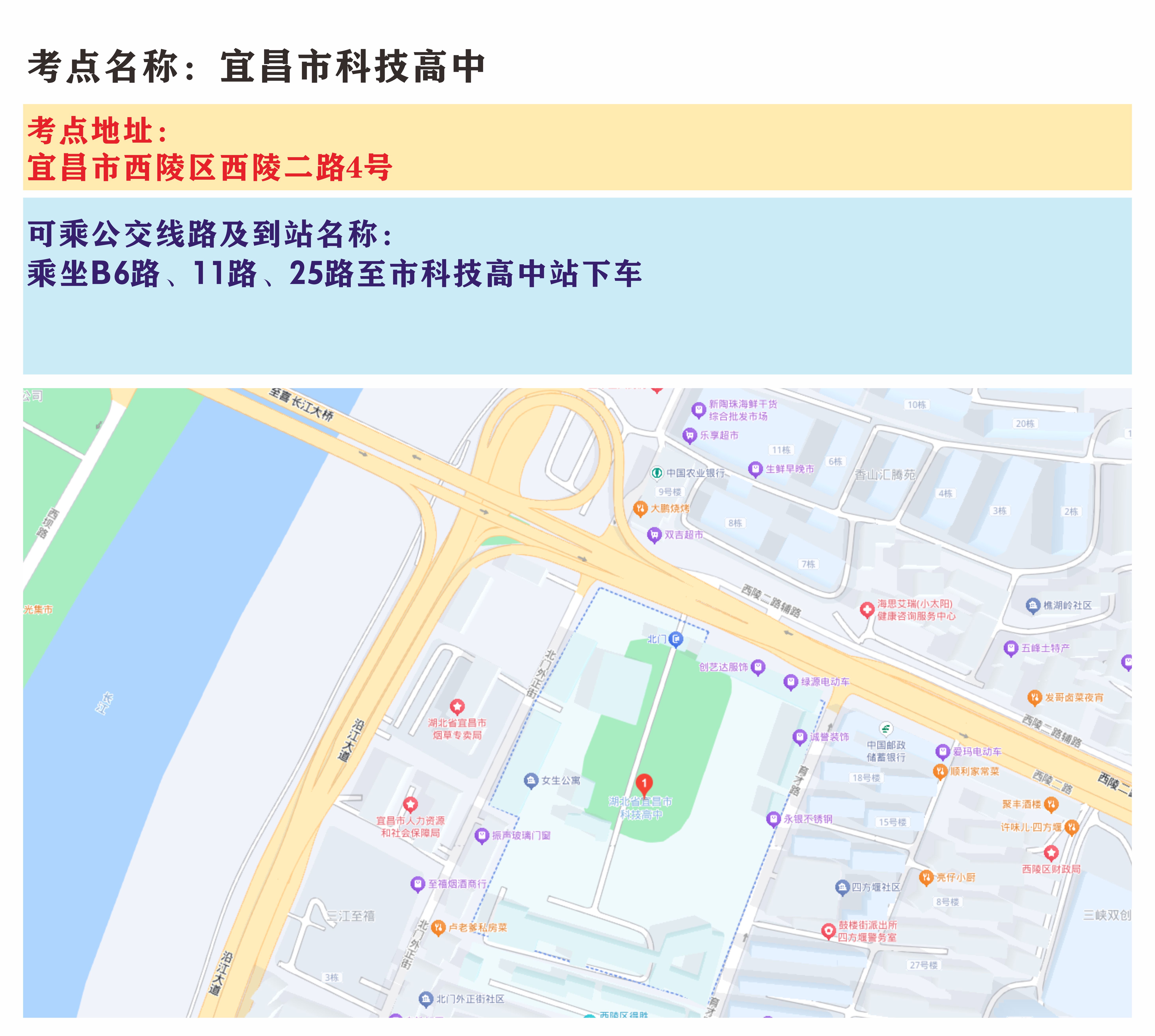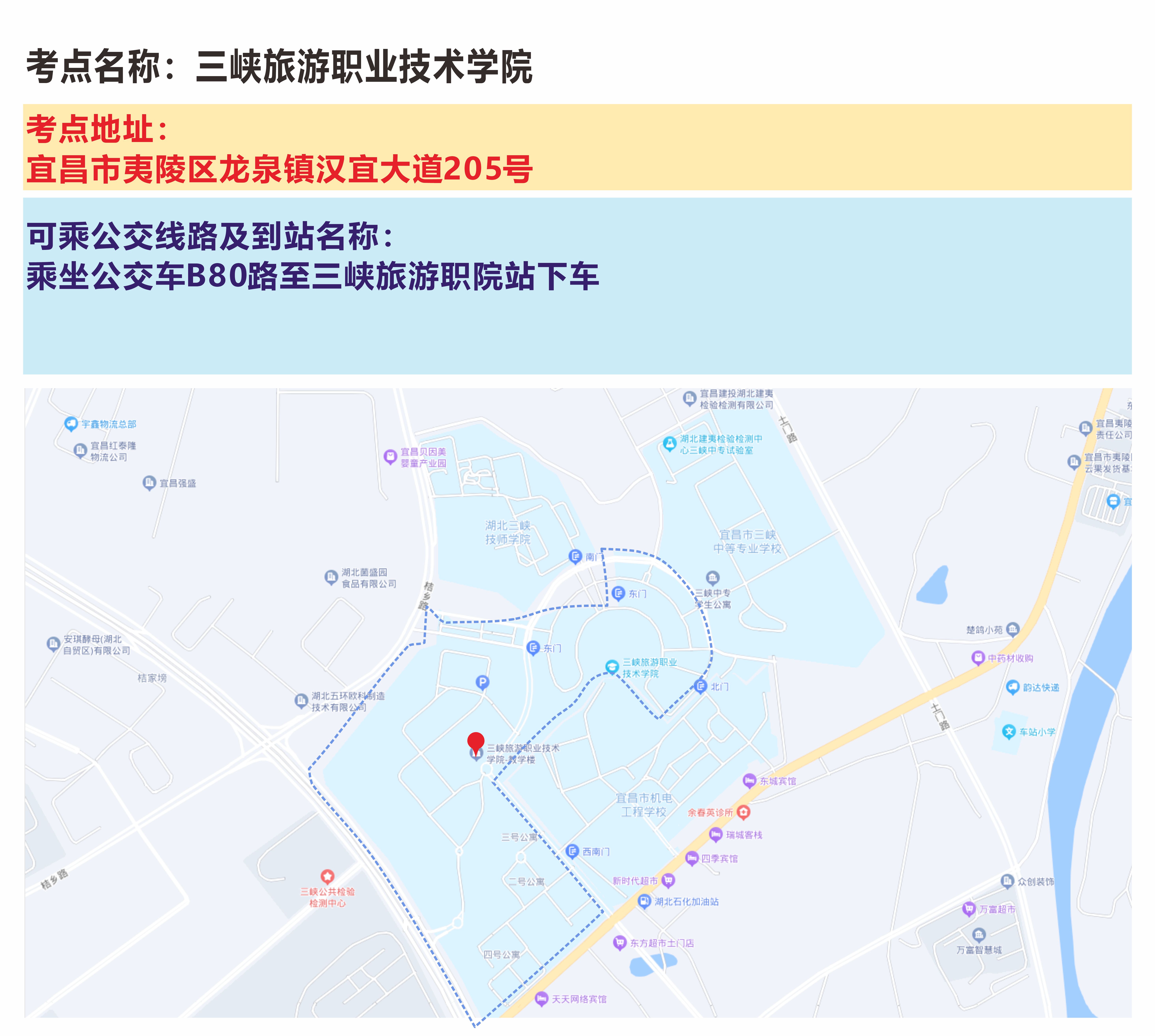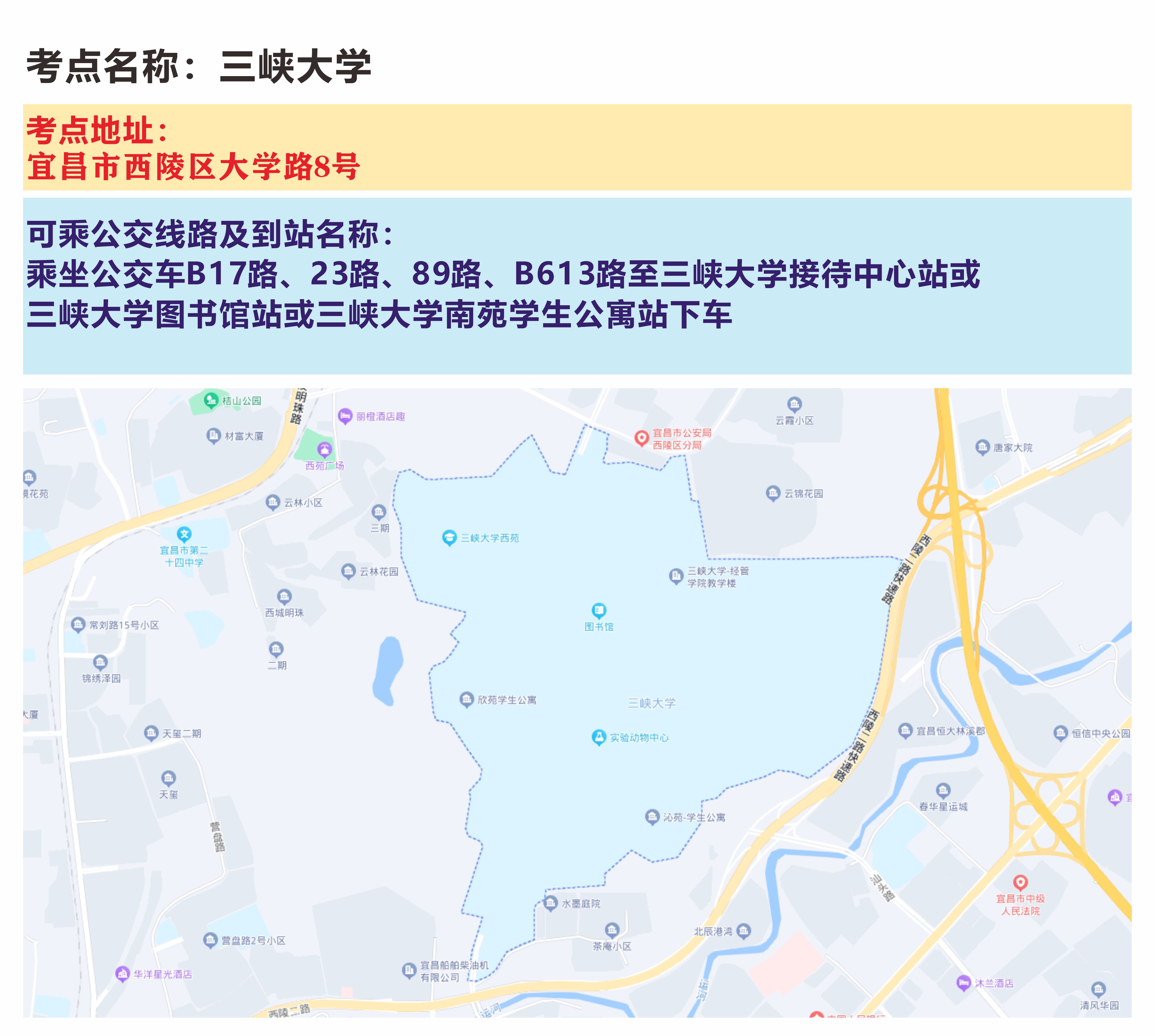 湖北省2025年度省市县乡考试录用公务员笔试宜昌考区考点地图