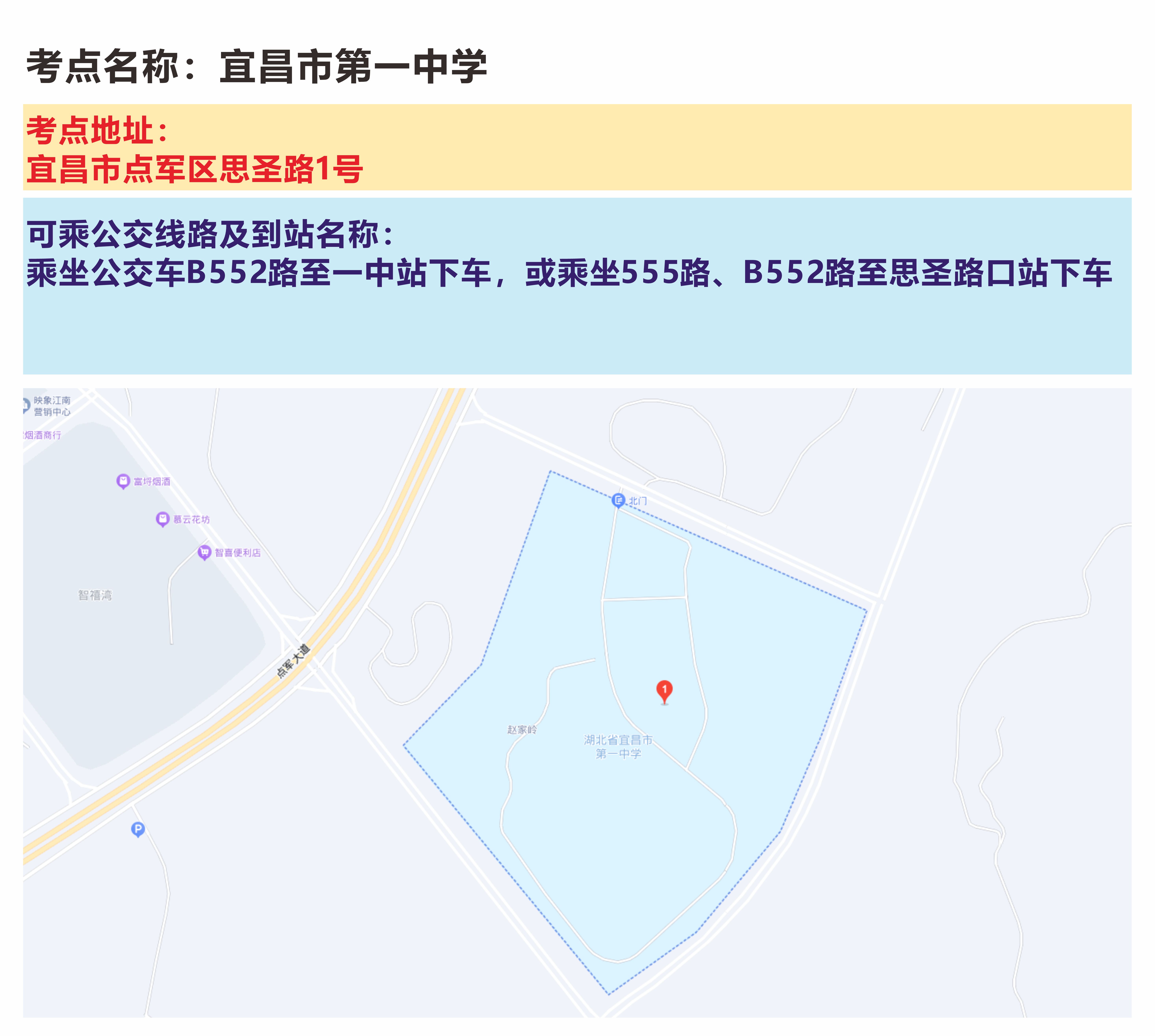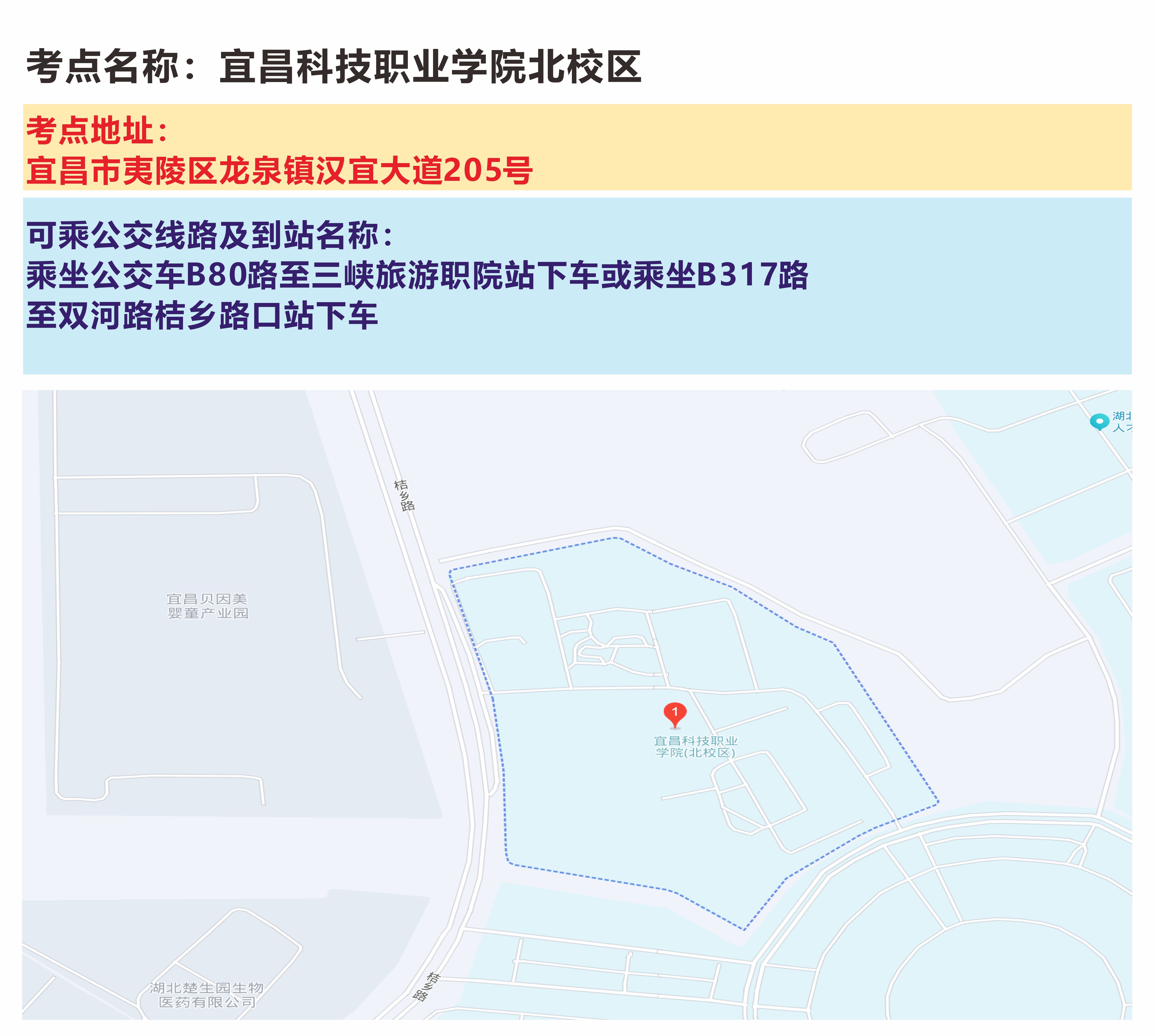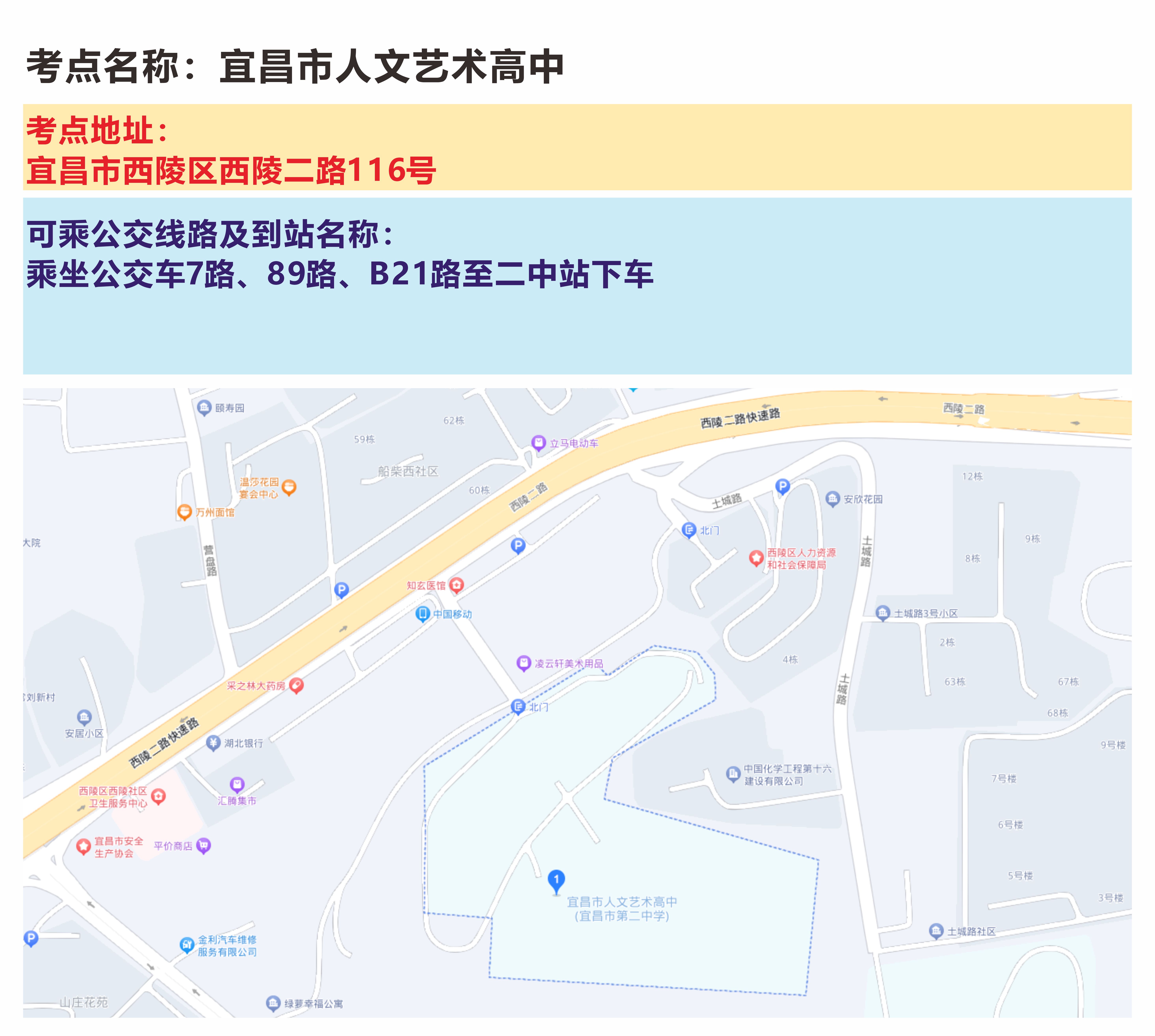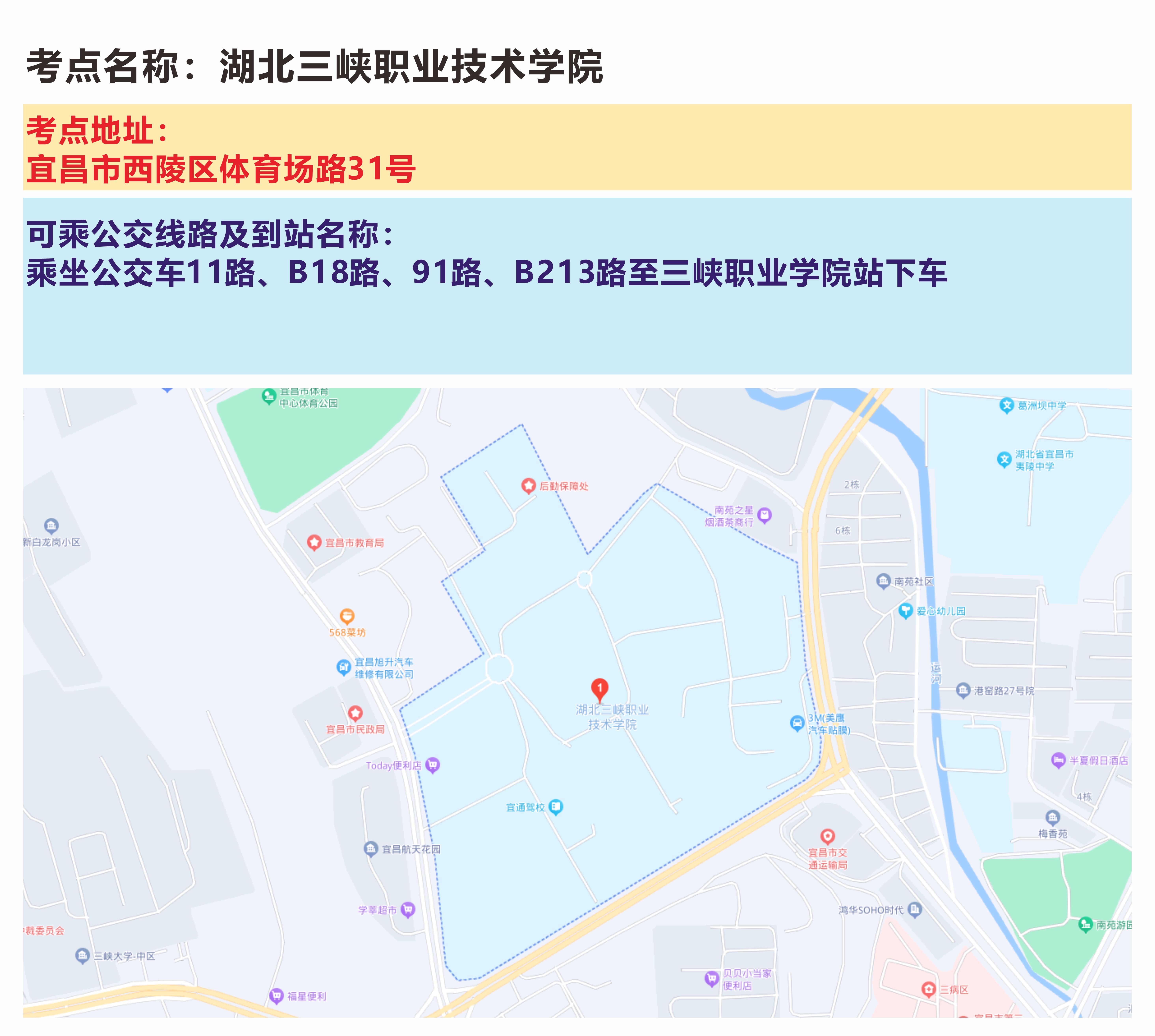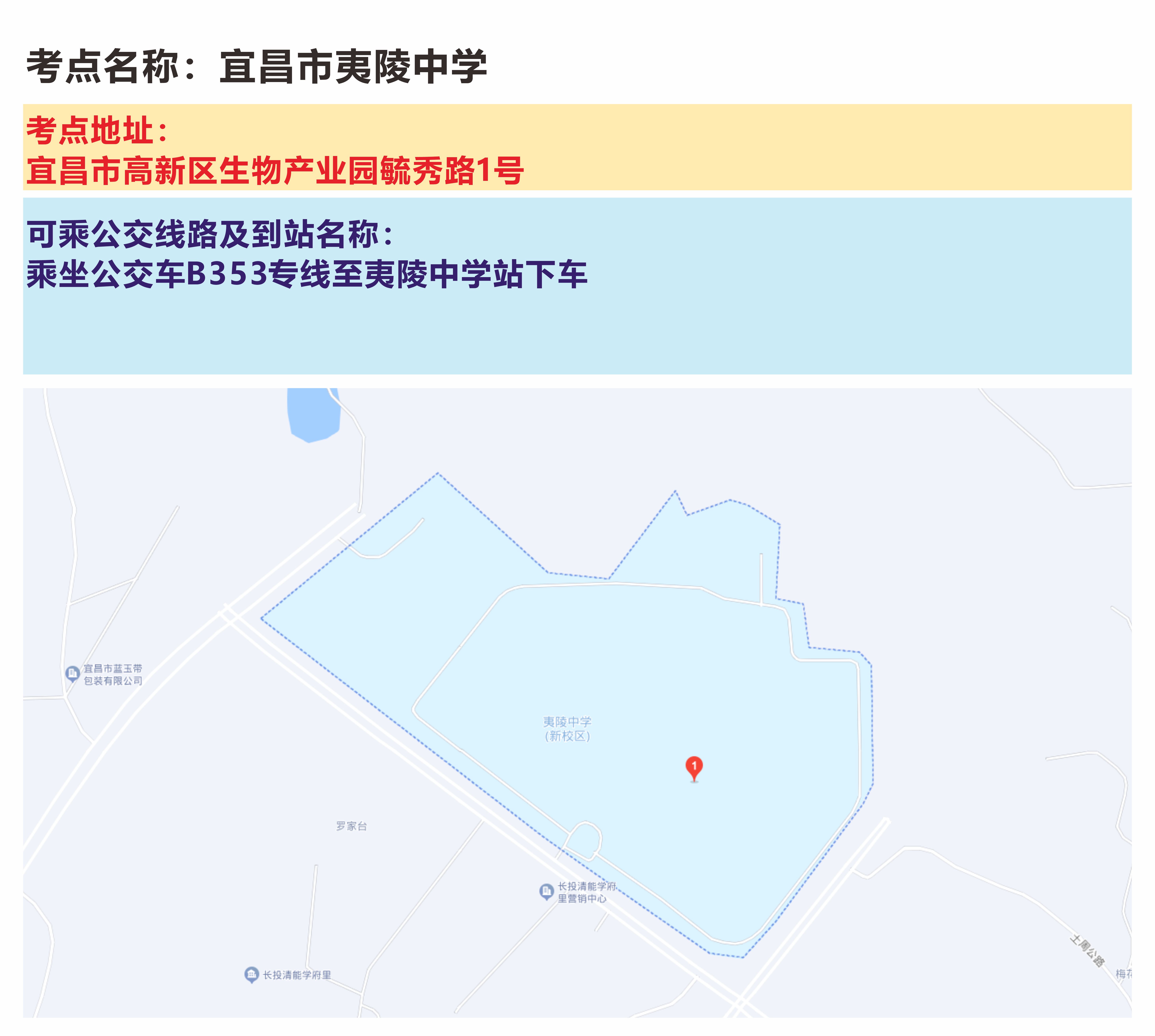 湖北省2025年度省市县乡考试录用公务员笔试宜昌考区考点地图