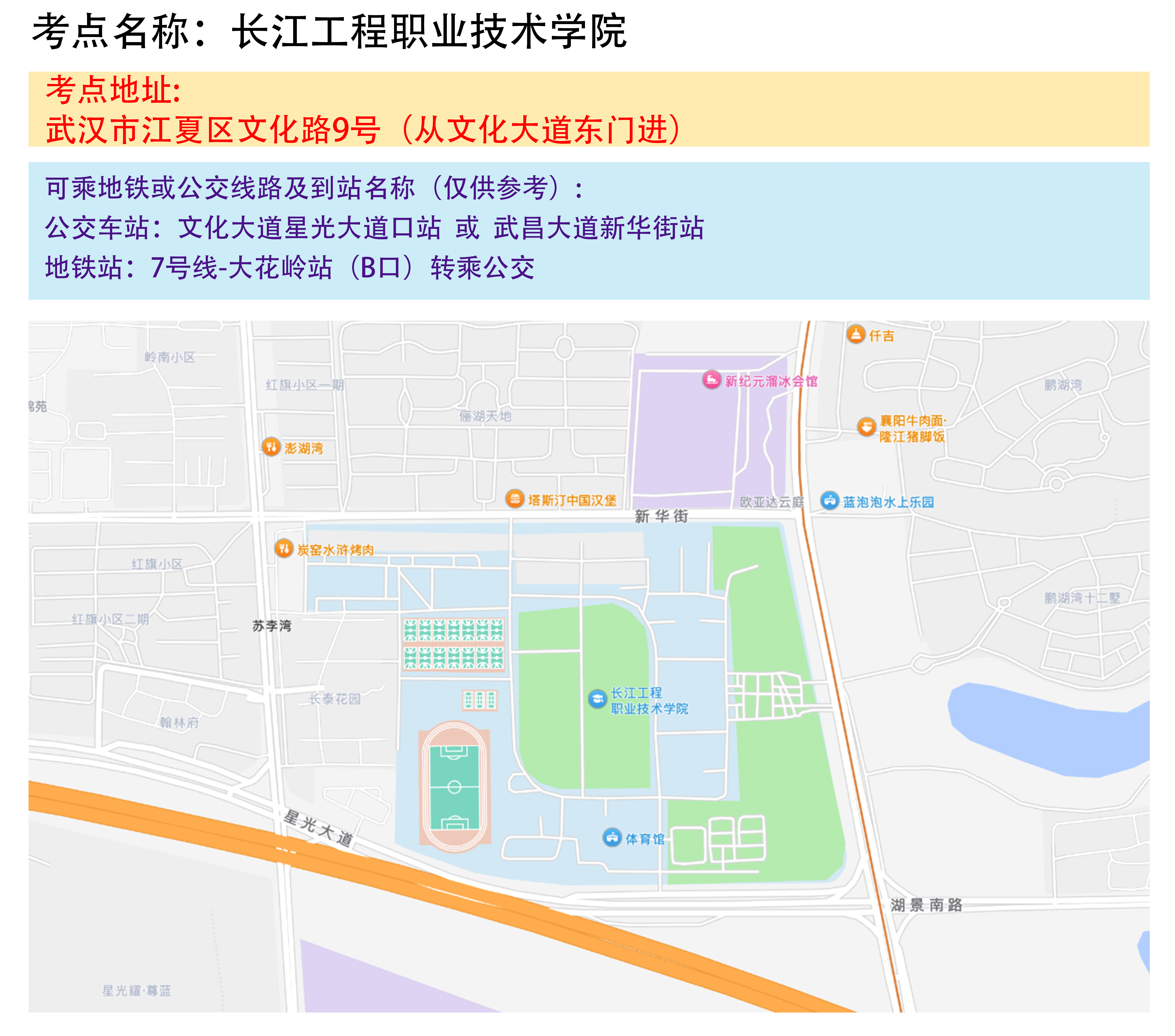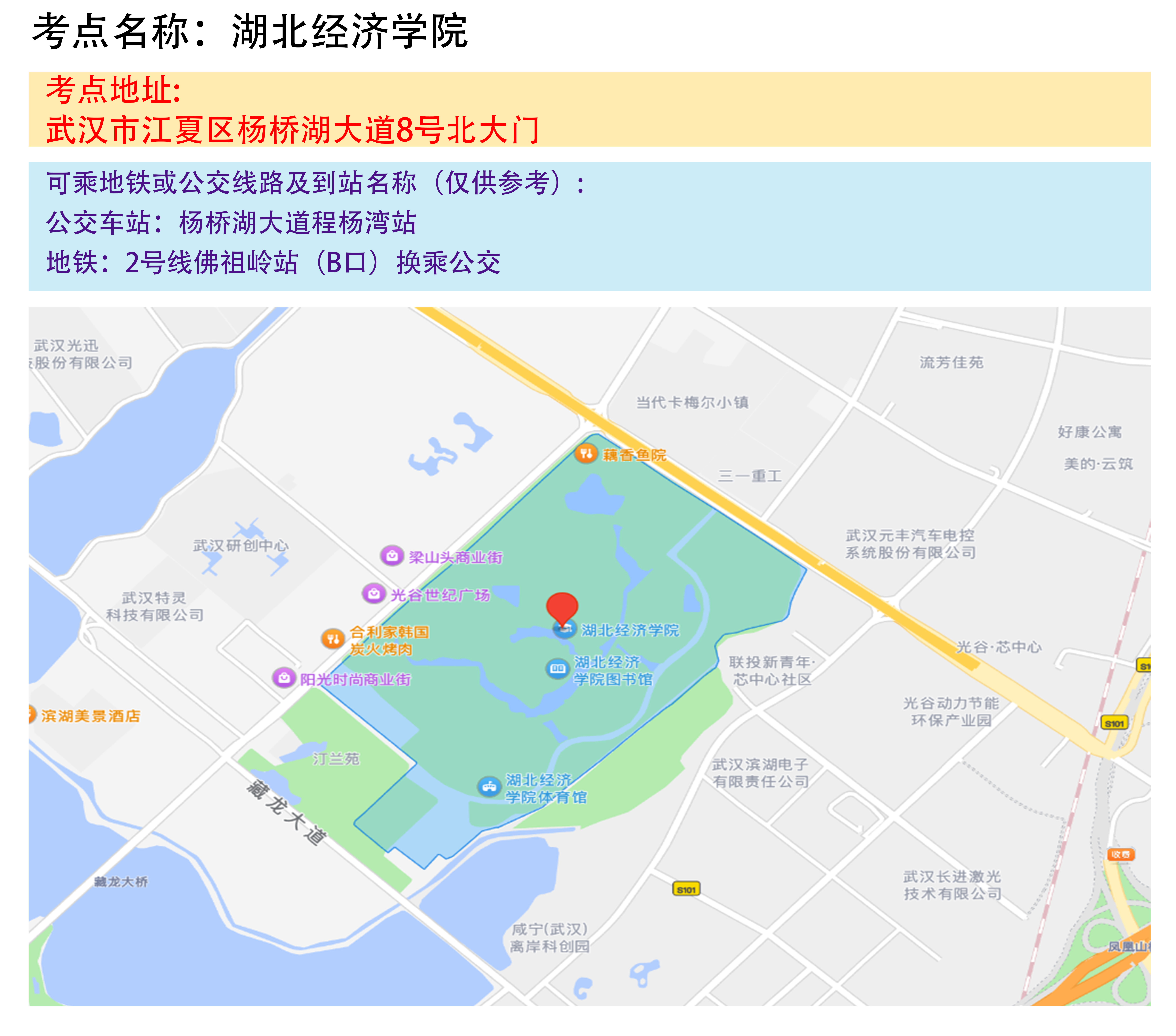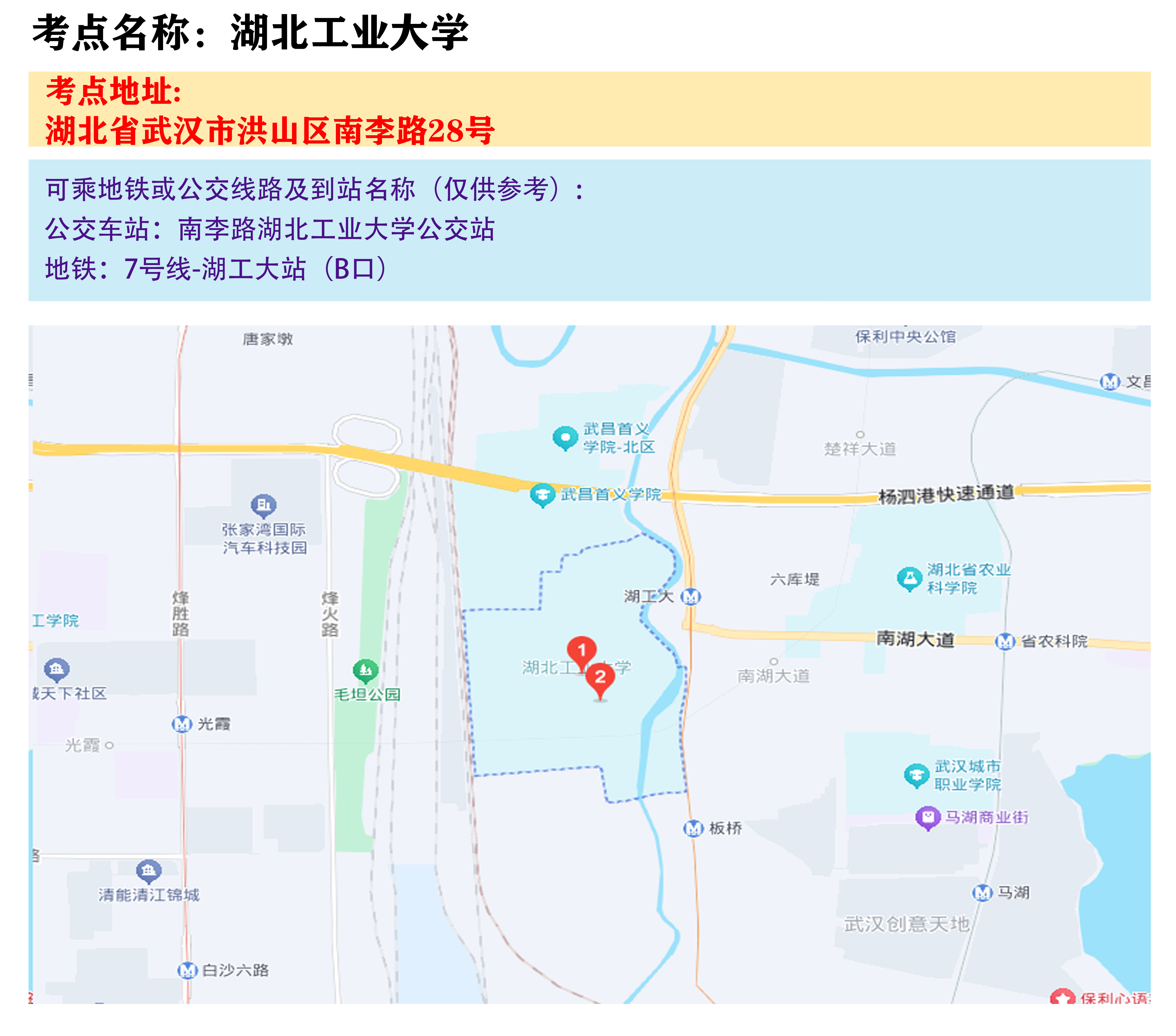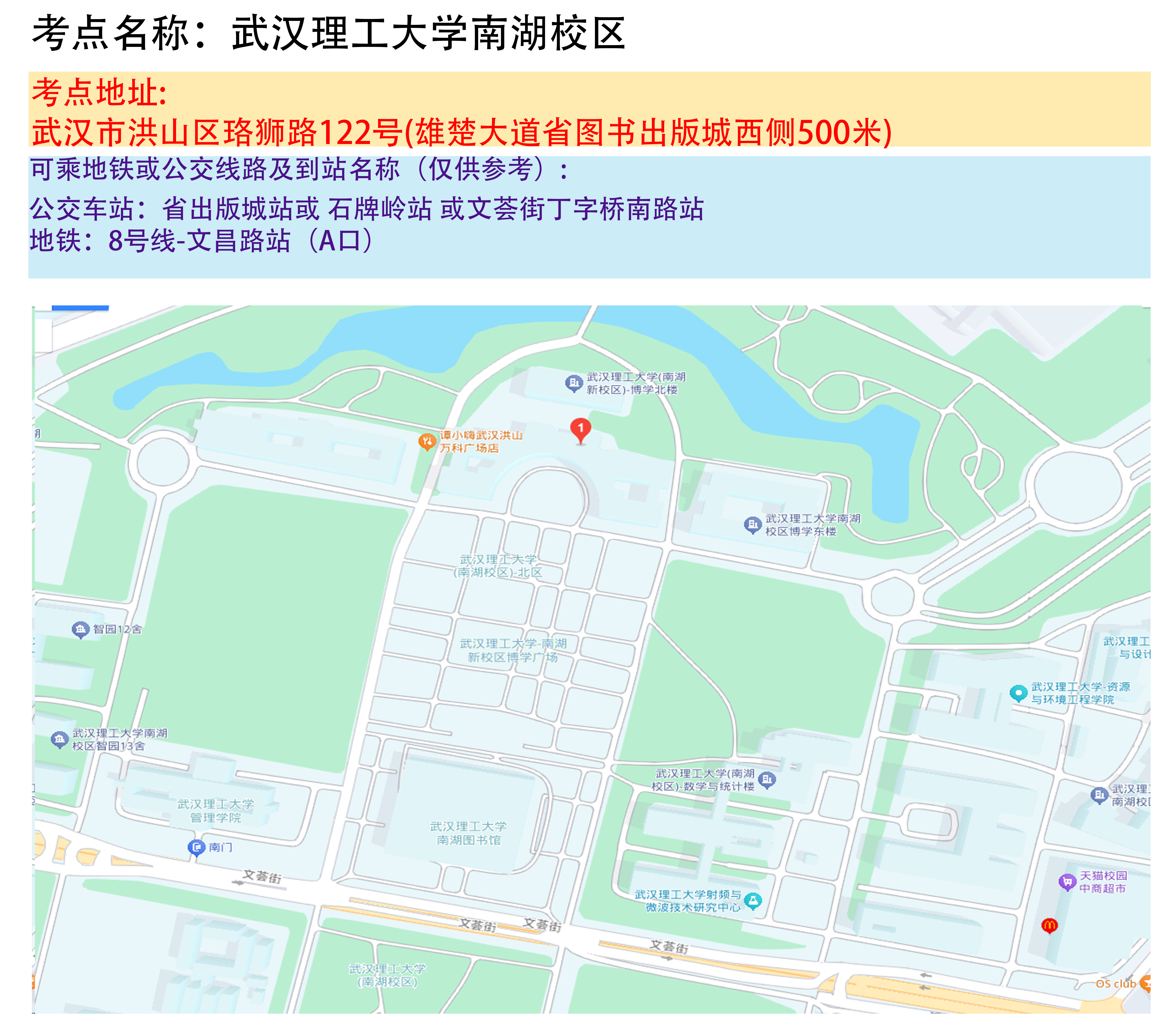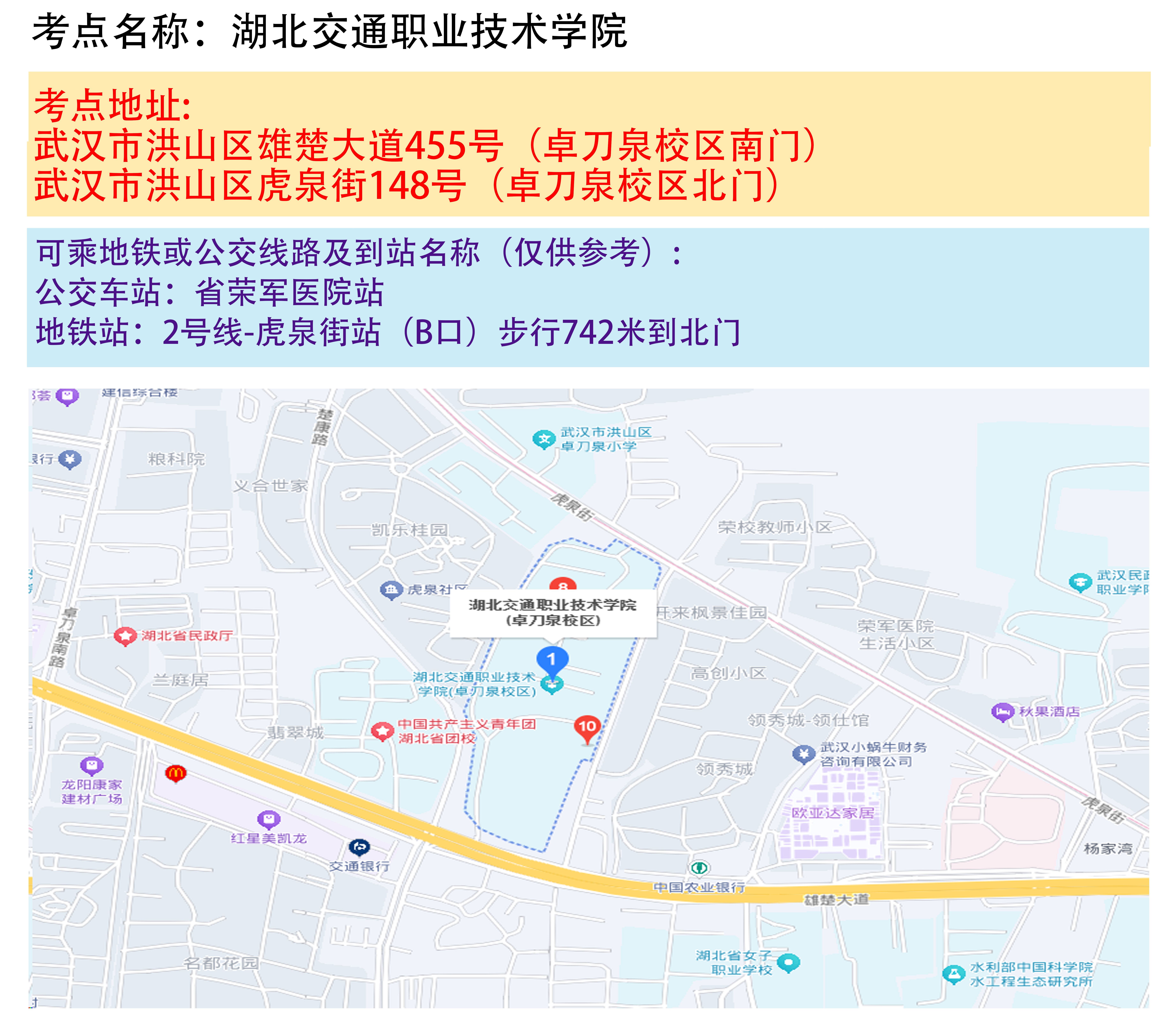 湖北省2025年事业单位统一公开招聘笔试武汉考区考点地图
